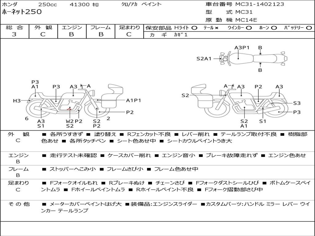 | Номер рамы / VIN | MC31-1402123 |