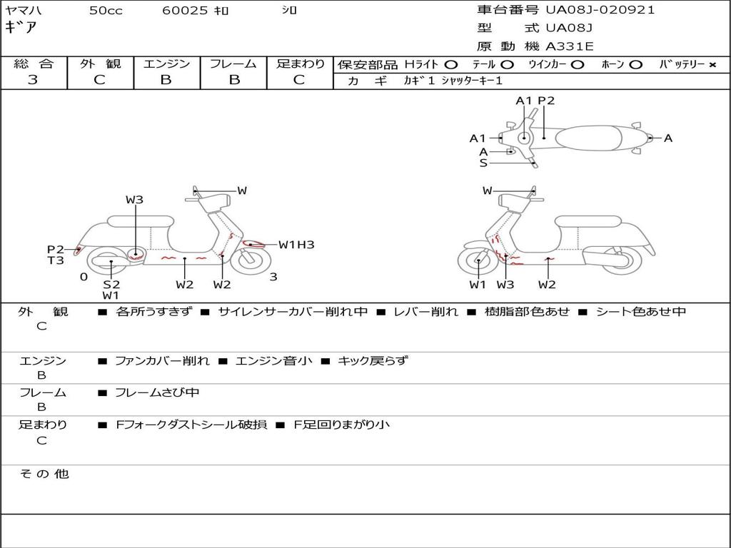 | Номер рамы / VIN | UA08J-020921 |