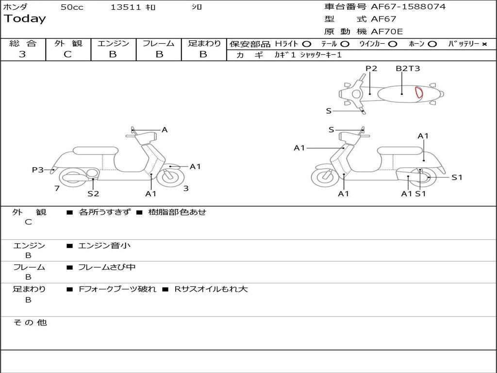 | Номер рамы / VIN | AF67-1588074 |