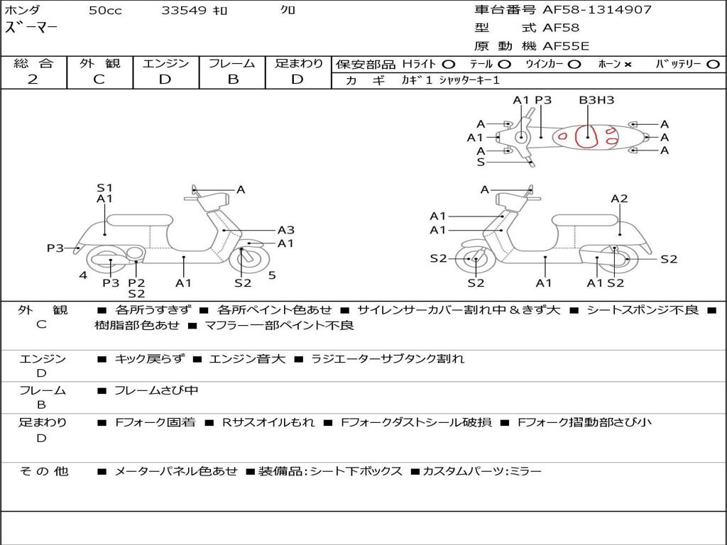 | Номер рамы / VIN | AF58-1314907 |