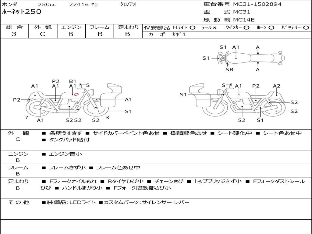 | Номер рамы / VIN | MC31-1502894 |