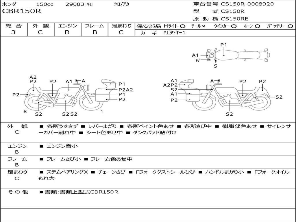 | Номер рамы / VIN | CS150R-0008920 |