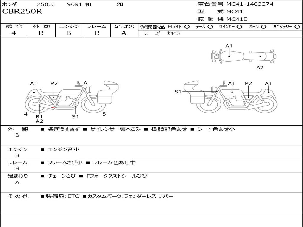 | Номер рамы / VIN | MC41-1403374 |