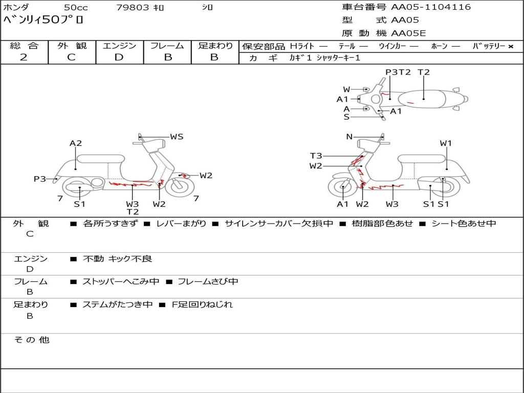 | Номер рамы / VIN | AA05-1104116 |