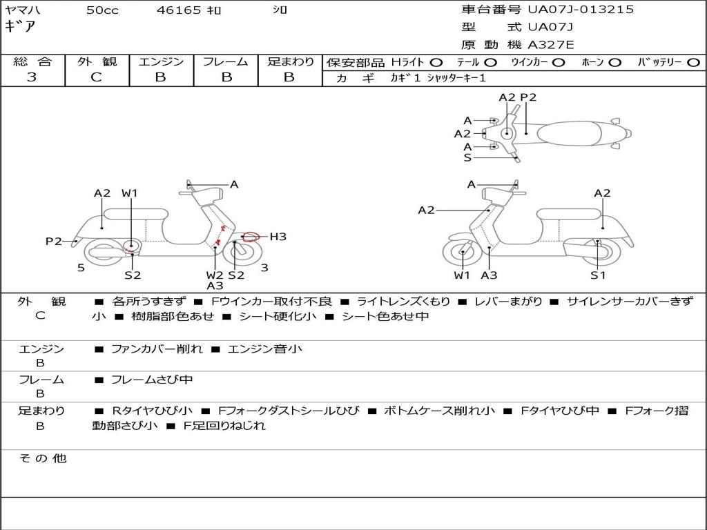 | Номер рамы / VIN | UA07J-013215 |