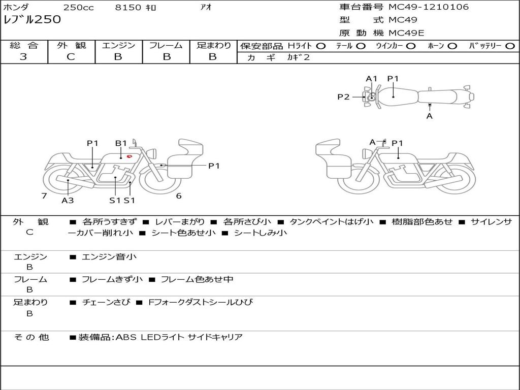 | Номер рамы / VIN | MC49-1210106 |
