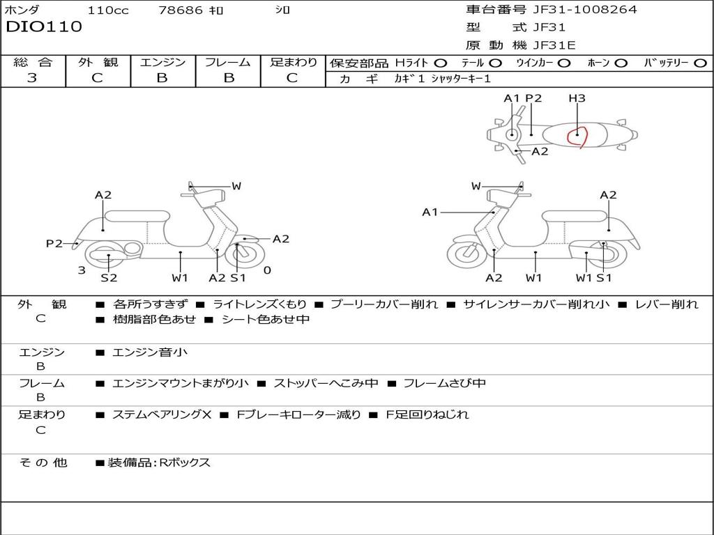 | Номер рамы / VIN | JF31-1008264 |