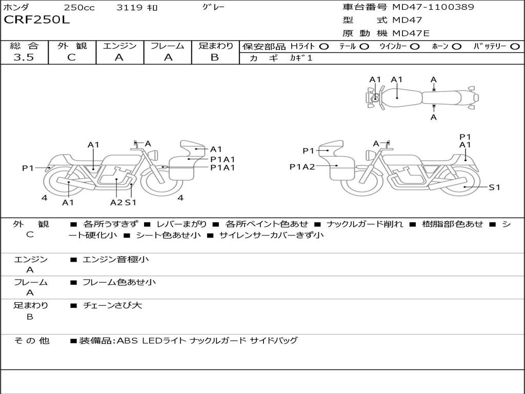 | Номер рамы / VIN | MD47-1100389 |