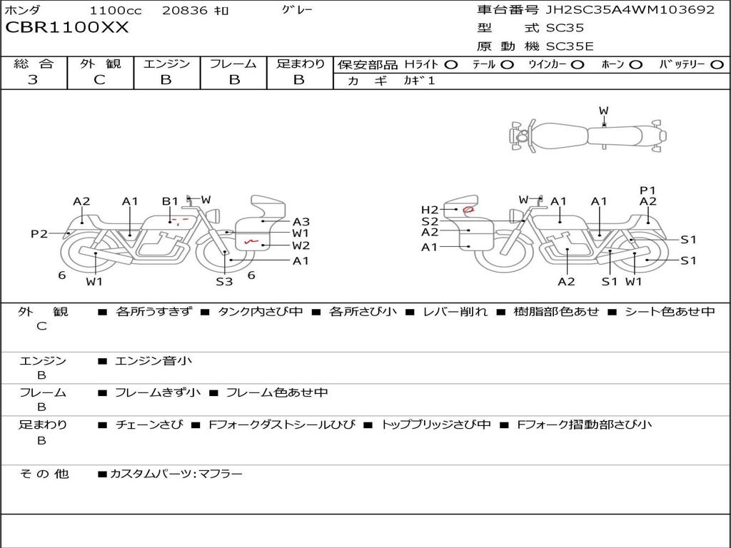 | Номер рамы / VIN | JH2SC35A4WM103692 |
