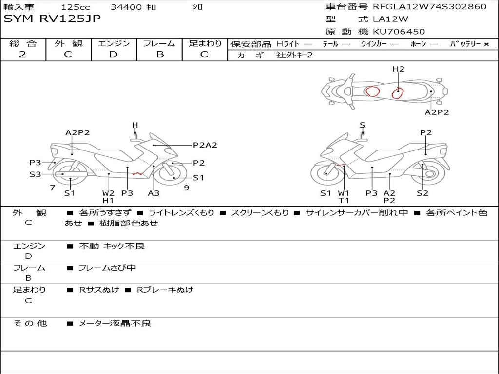 | Номер рамы / VIN | RFGLA12W74S302860 |