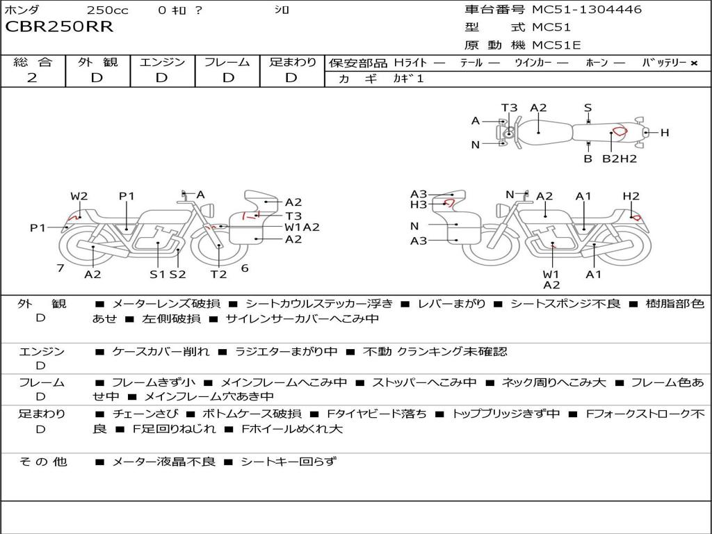 | Номер рамы / VIN | MC51-1304446 |