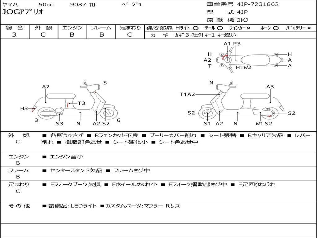 | Номер рамы / VIN | 4JP-7231862 |