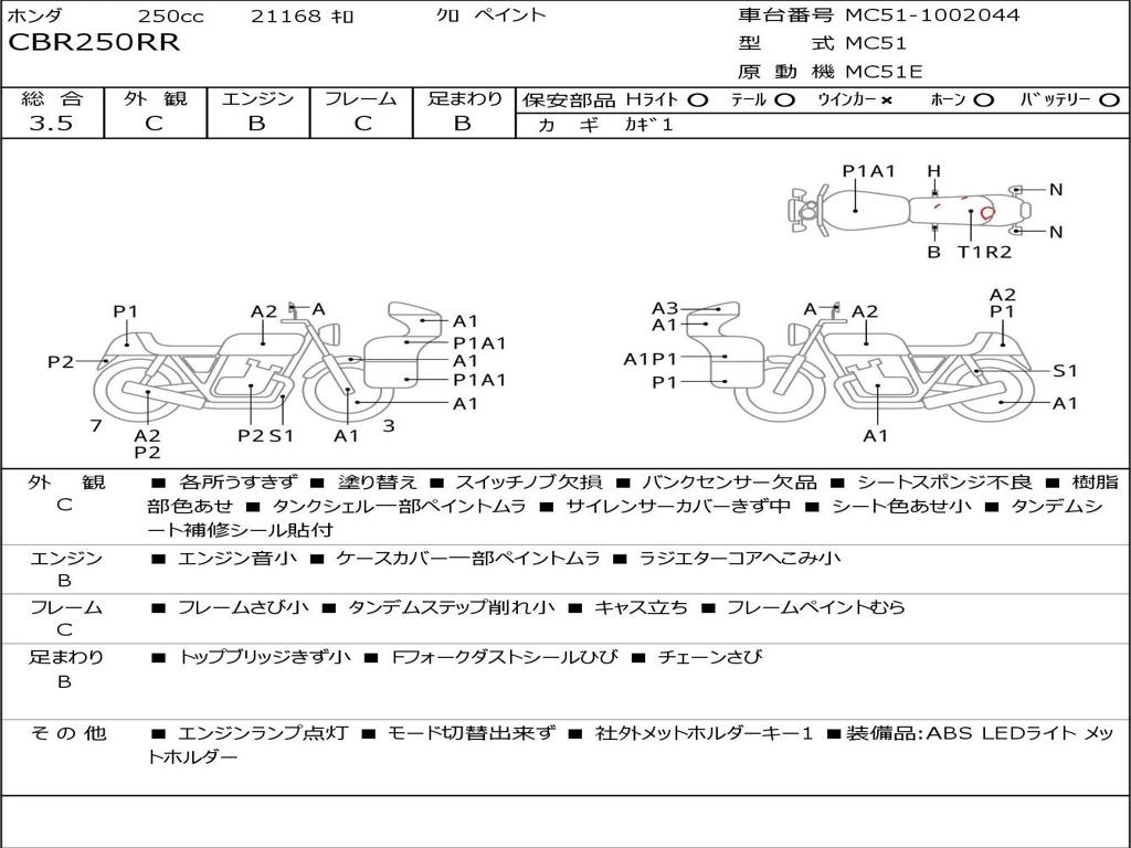 | Номер рамы / VIN | MC51-1002044 |