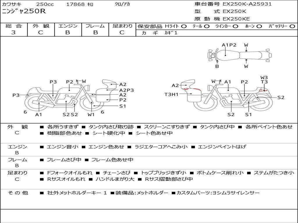 | Номер рамы / VIN | EX250K-A25931 |