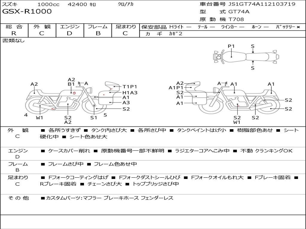 | Номер рамы / VIN | JS1GT74A112103719 |