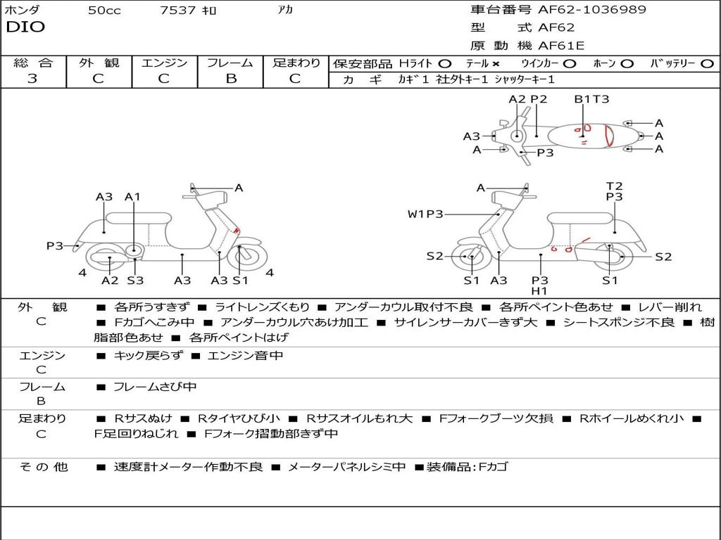| Номер рамы / VIN | AF62-1036989 |