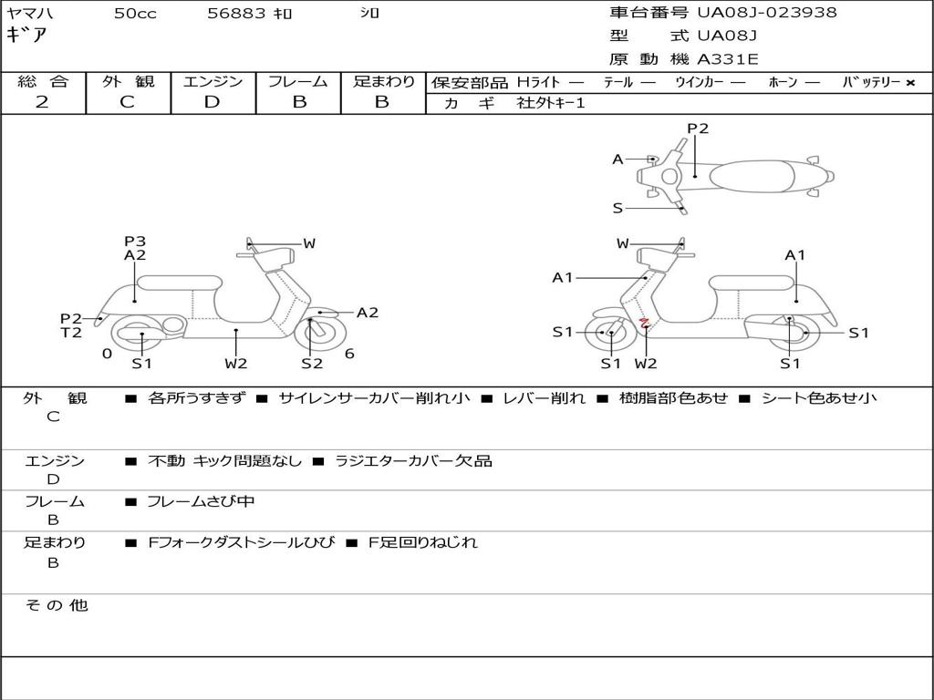 | Номер рамы / VIN | UA08J-023938 |