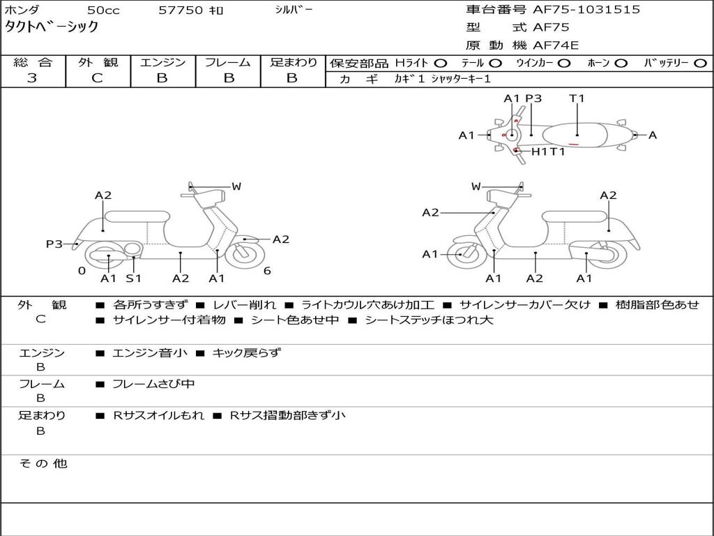 | Номер рамы / VIN | AF75-1031515 |