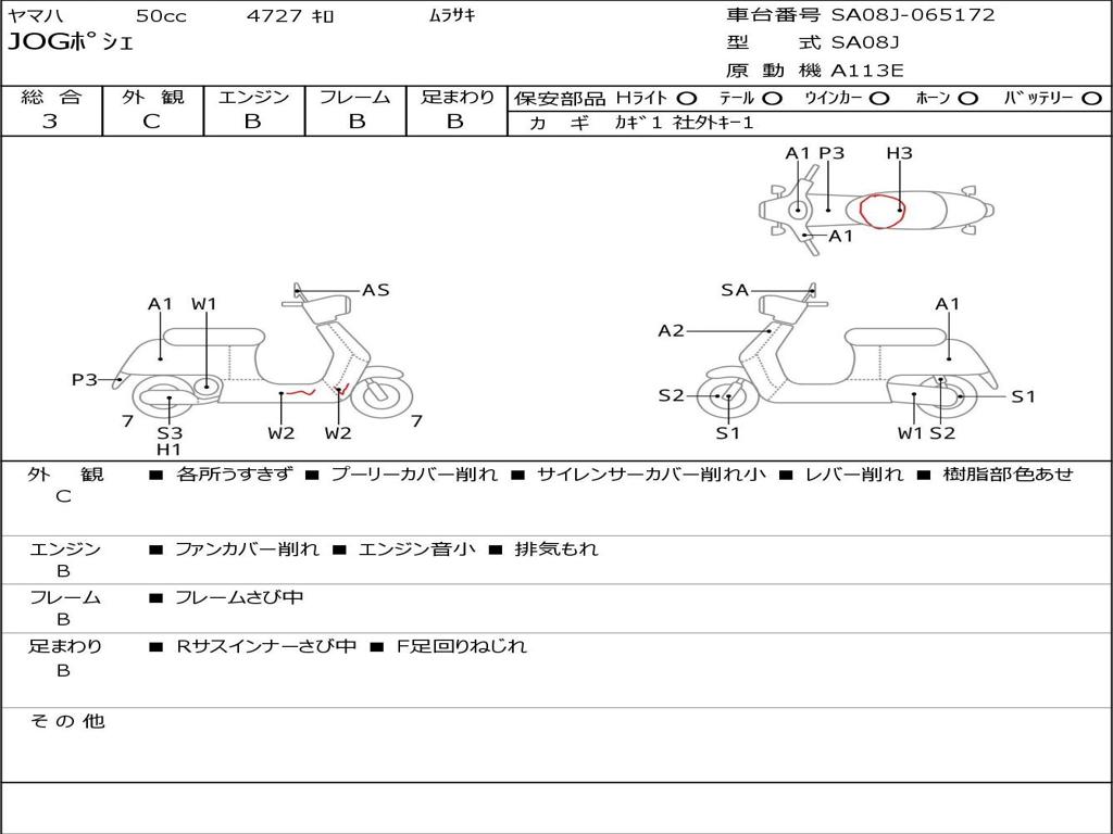 | Номер рамы / VIN | SA08J-065172 |