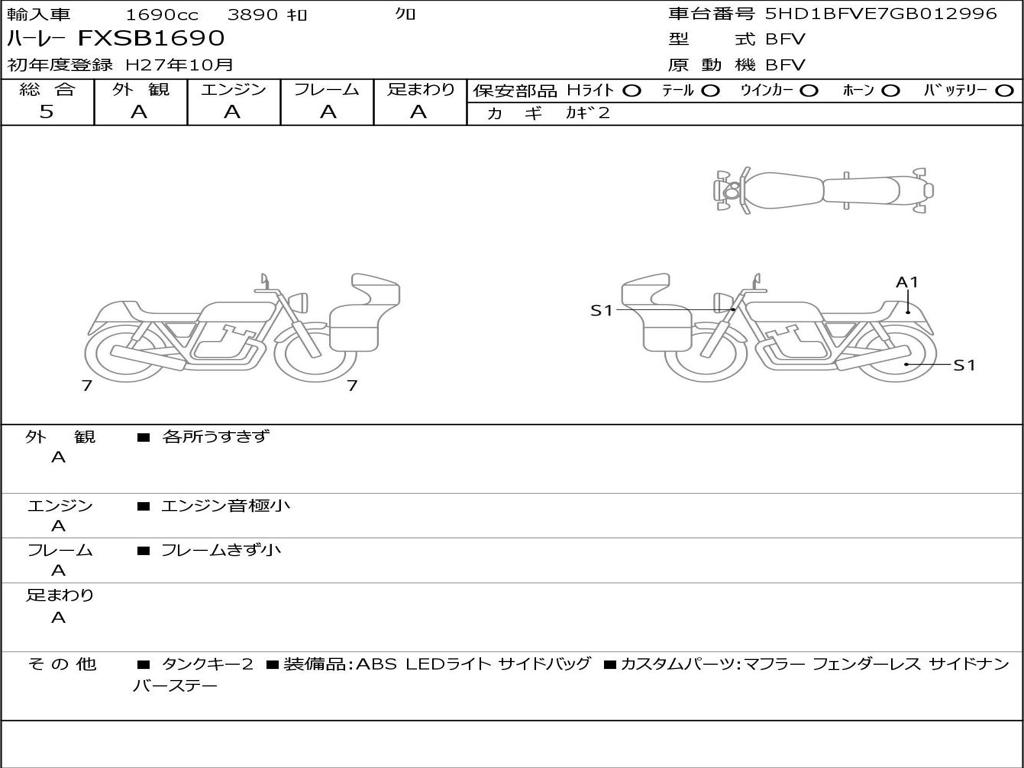 | Номер рамы / VIN | 5HD1BFVE7GB012996 |