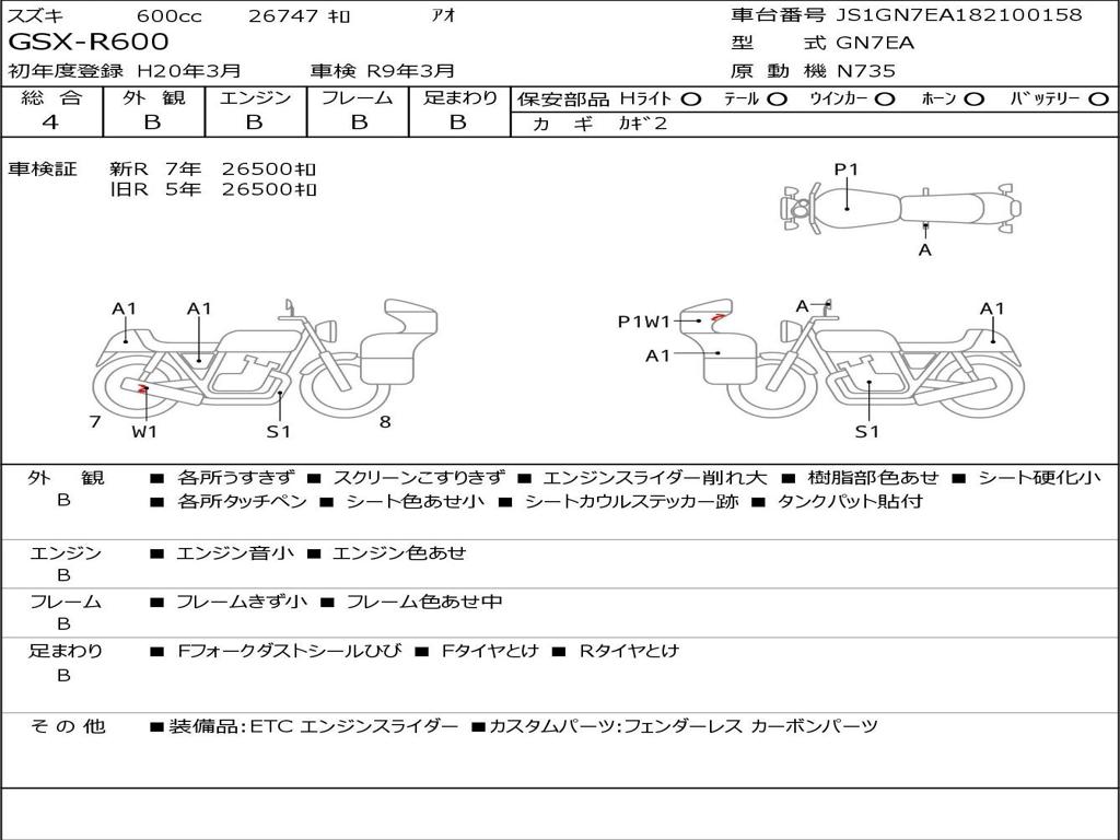 | Номер рамы / VIN | JS1GN7EA182100158 |