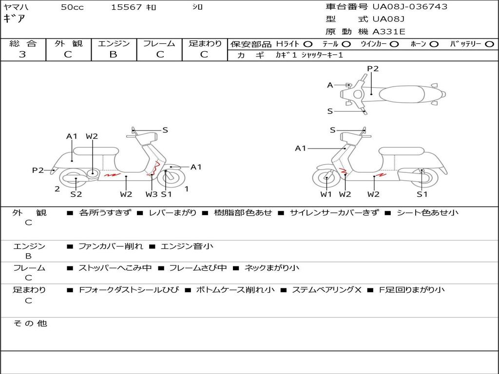 | Номер рамы / VIN | UA08J-036743 |