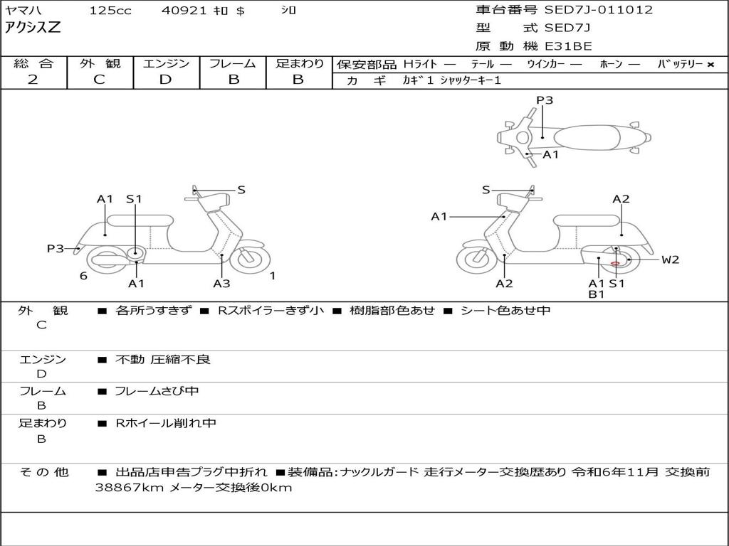 | Номер рамы / VIN | SED7J-011012 |