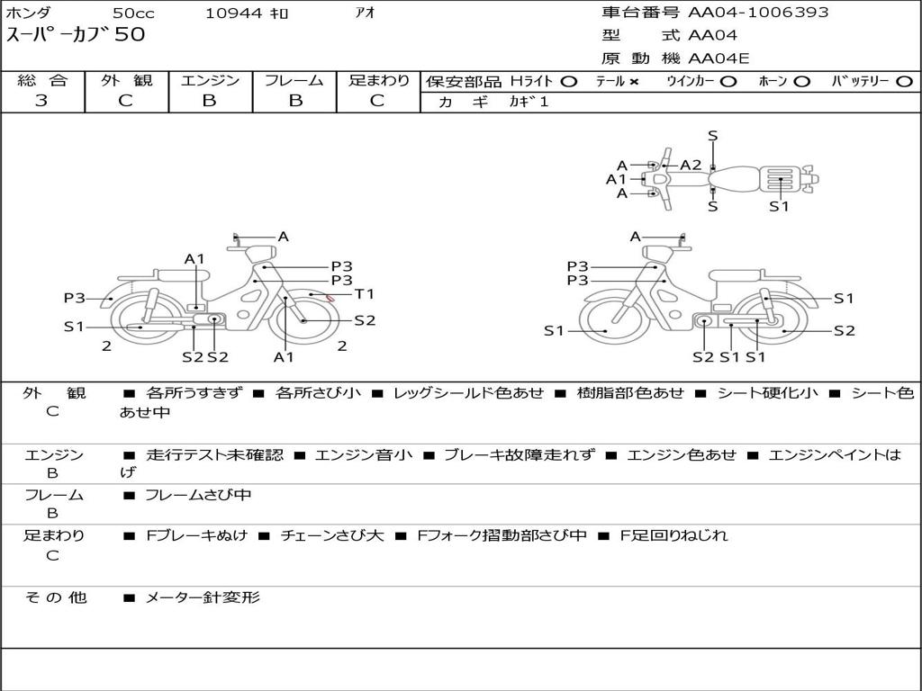 | Номер рамы / VIN | AA04-1006393 |
