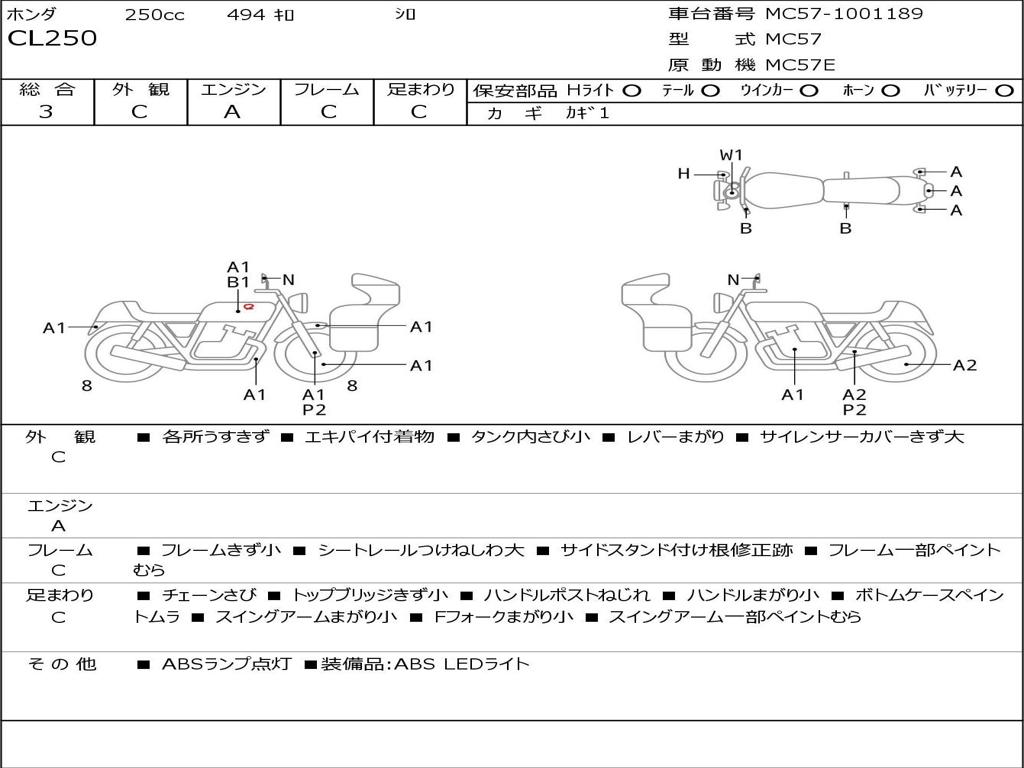 | Номер рамы / VIN | MC57-1001189 |