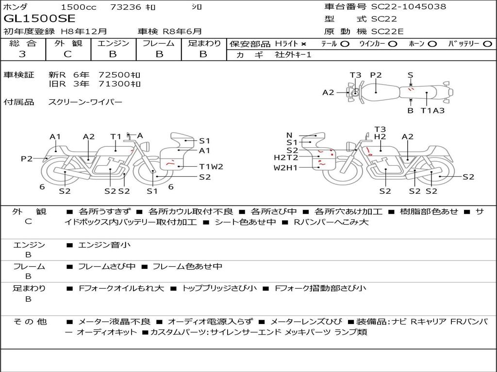 | Номер рамы / VIN | SC22-1045038 |
