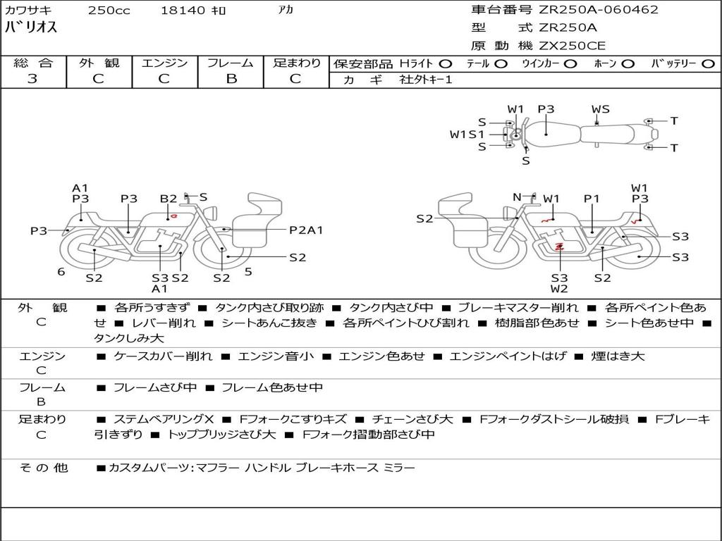 | Номер рамы / VIN | ZR250A-060462 |