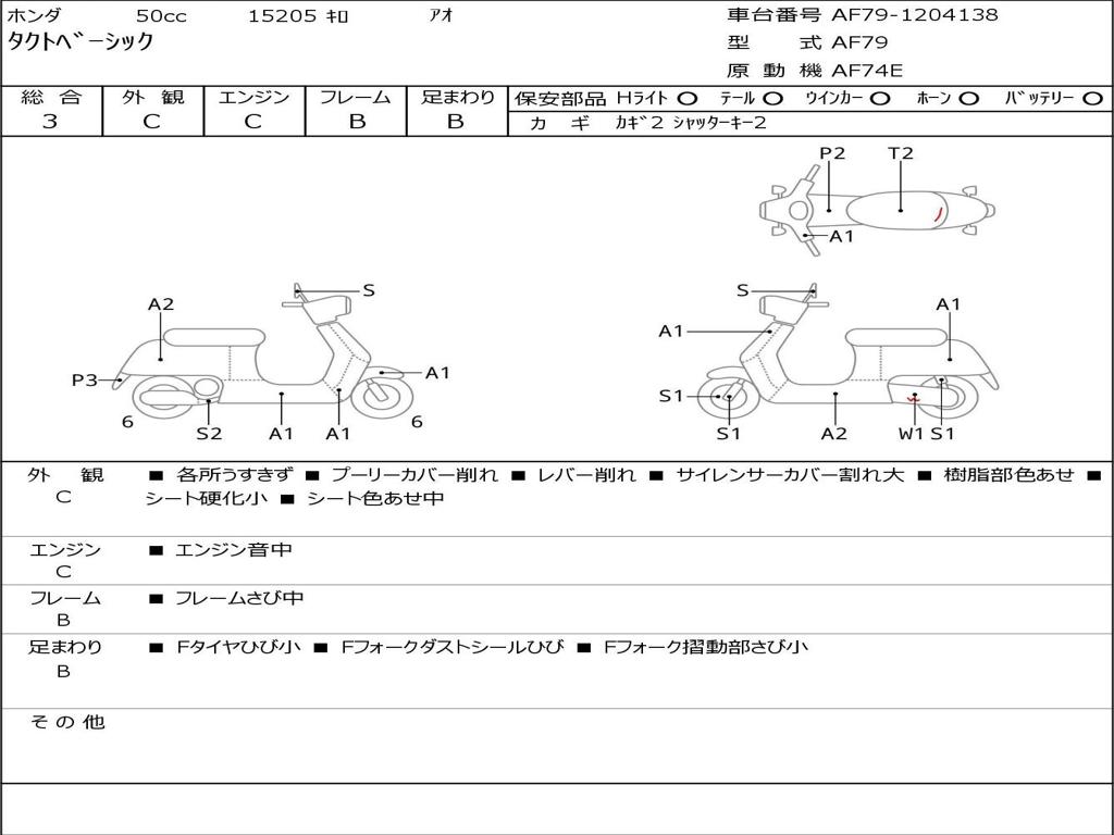 | Номер рамы / VIN | AF79-1204138 |