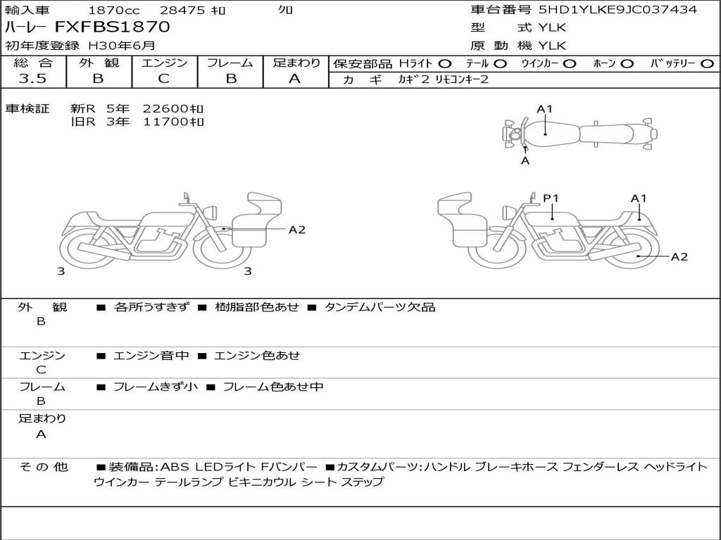| Номер рамы / VIN | 5HD1YLKE9JC037434 |