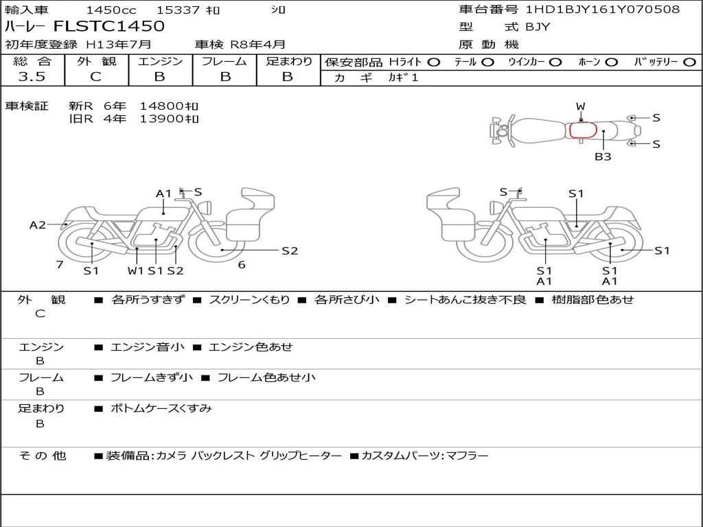 | Номер рамы / VIN | 1HD1BJY161Y070508 |