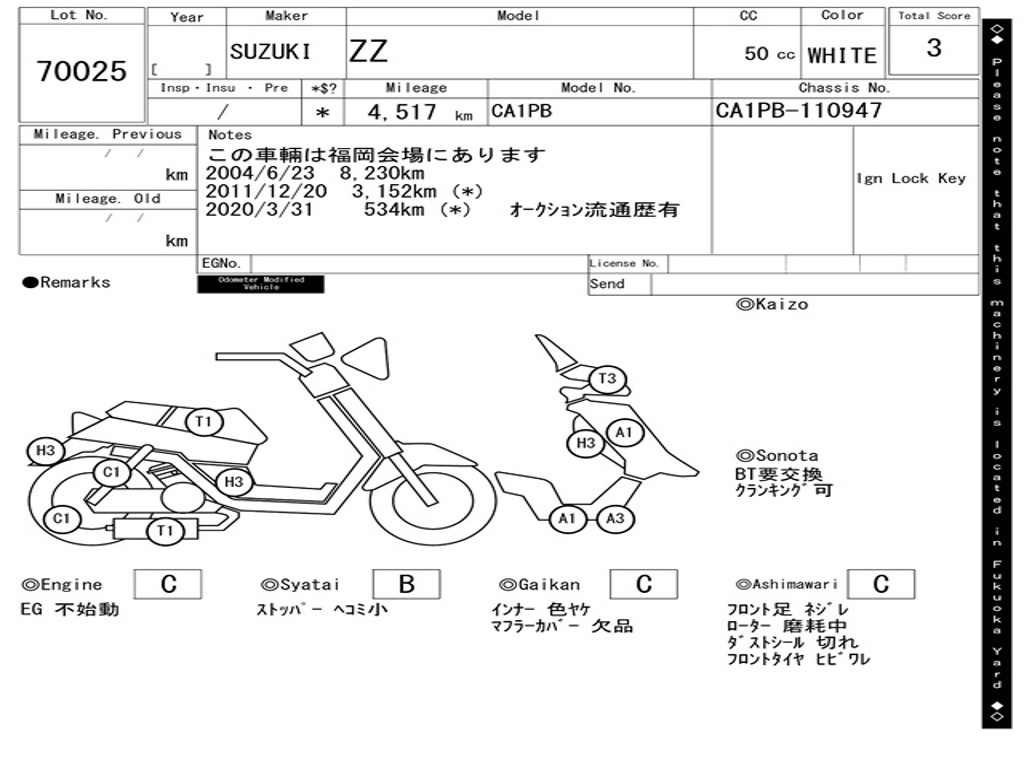 | Номер рамы / VIN | CA1PB-110947 |