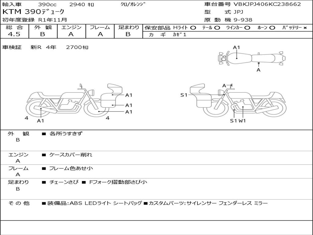 | Номер рамы / VIN | VBKJPJ406KC238662 |