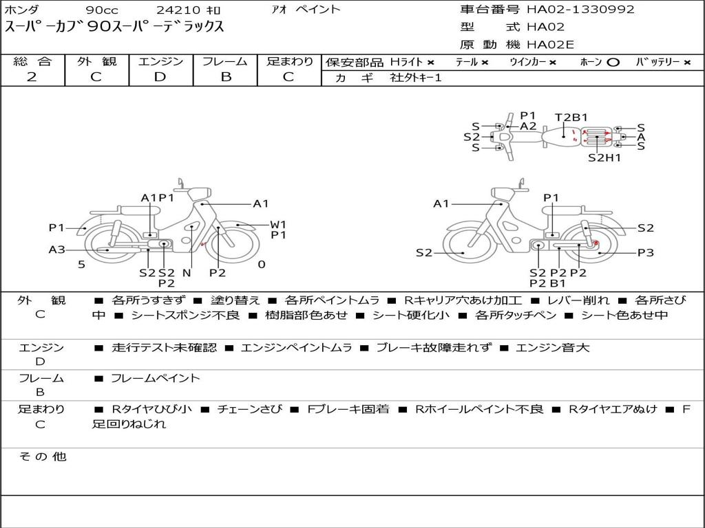 | Номер рамы / VIN | HA02-1330992 |