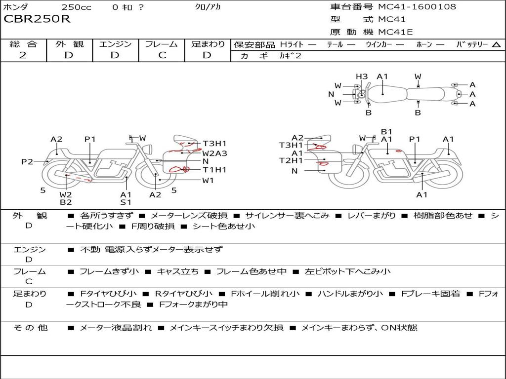 | Номер рамы / VIN | MC41-1600108 |