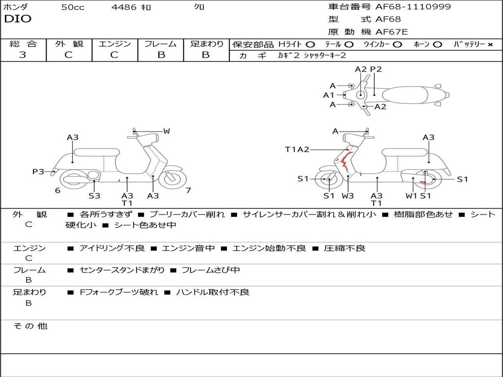 | Номер рамы / VIN | AF68-1110999 |