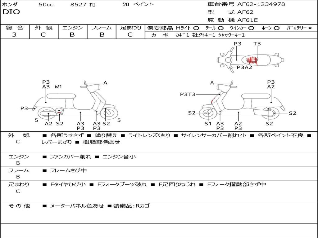 | Номер рамы / VIN | AF62-1234978 |