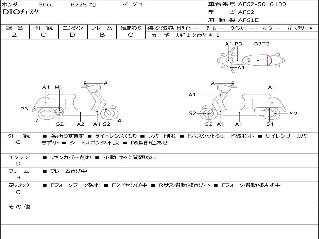 | Номер рамы / VIN | AF62-5016130 |