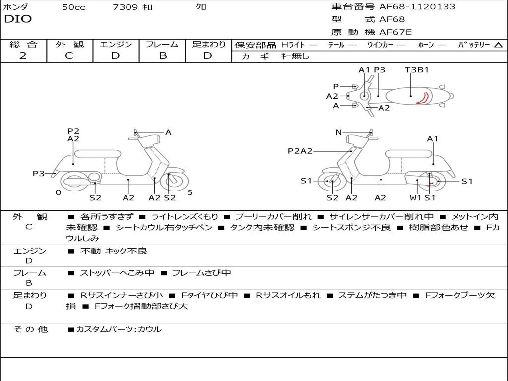 | Номер рамы / VIN | AF68-1120133 |