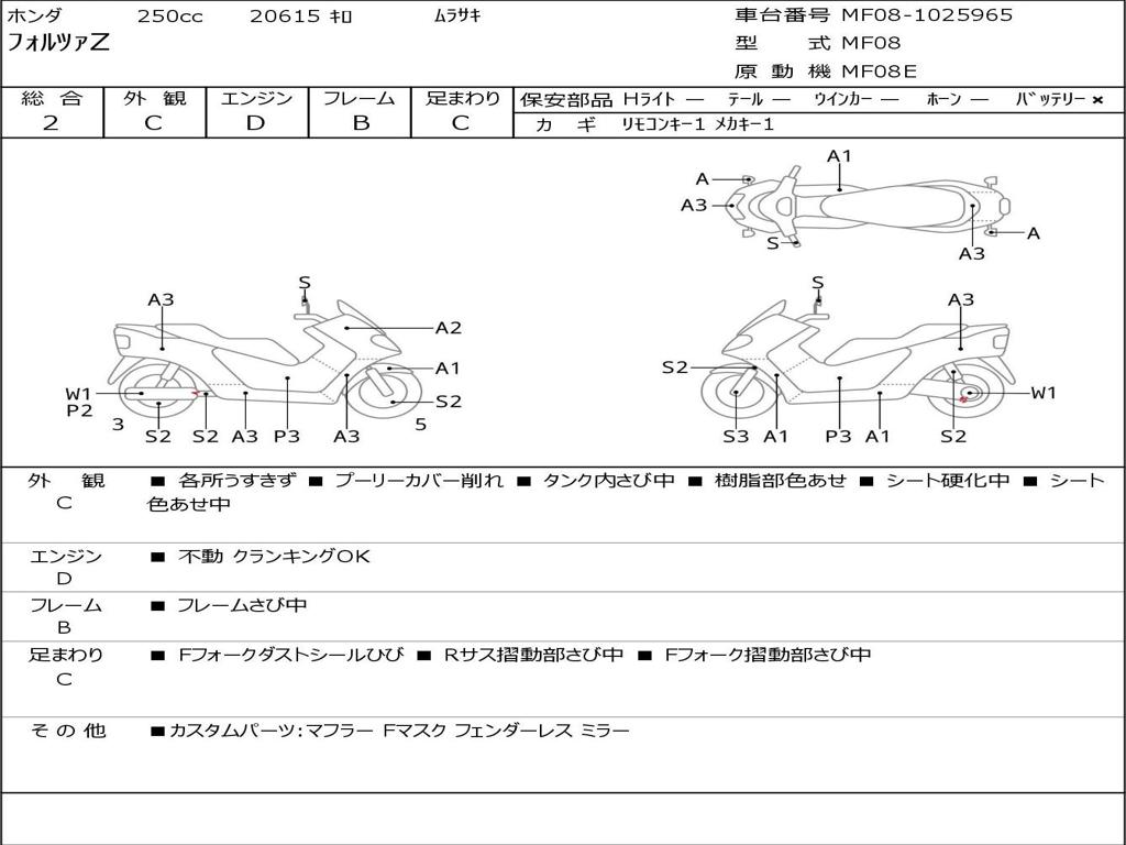 | Номер рамы / VIN | MF08-1025965 |