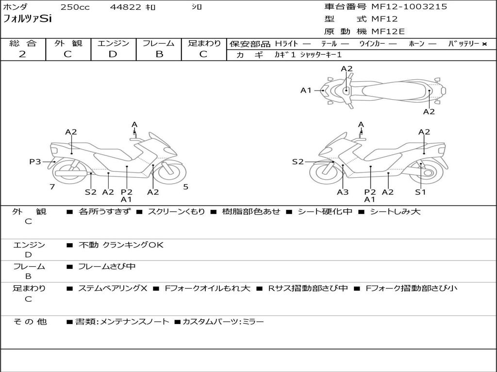 | Номер рамы / VIN | MF12-1003215 |