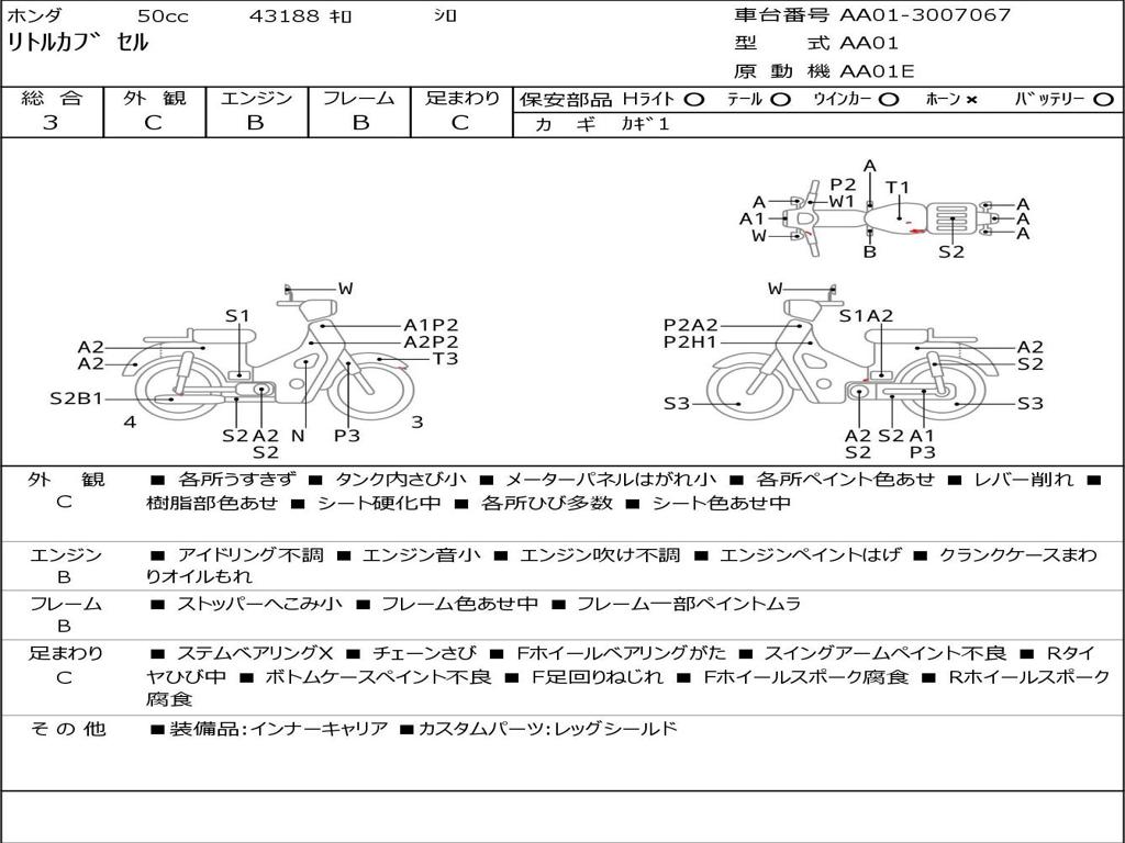 | Номер рамы / VIN | AA01-3007067 |