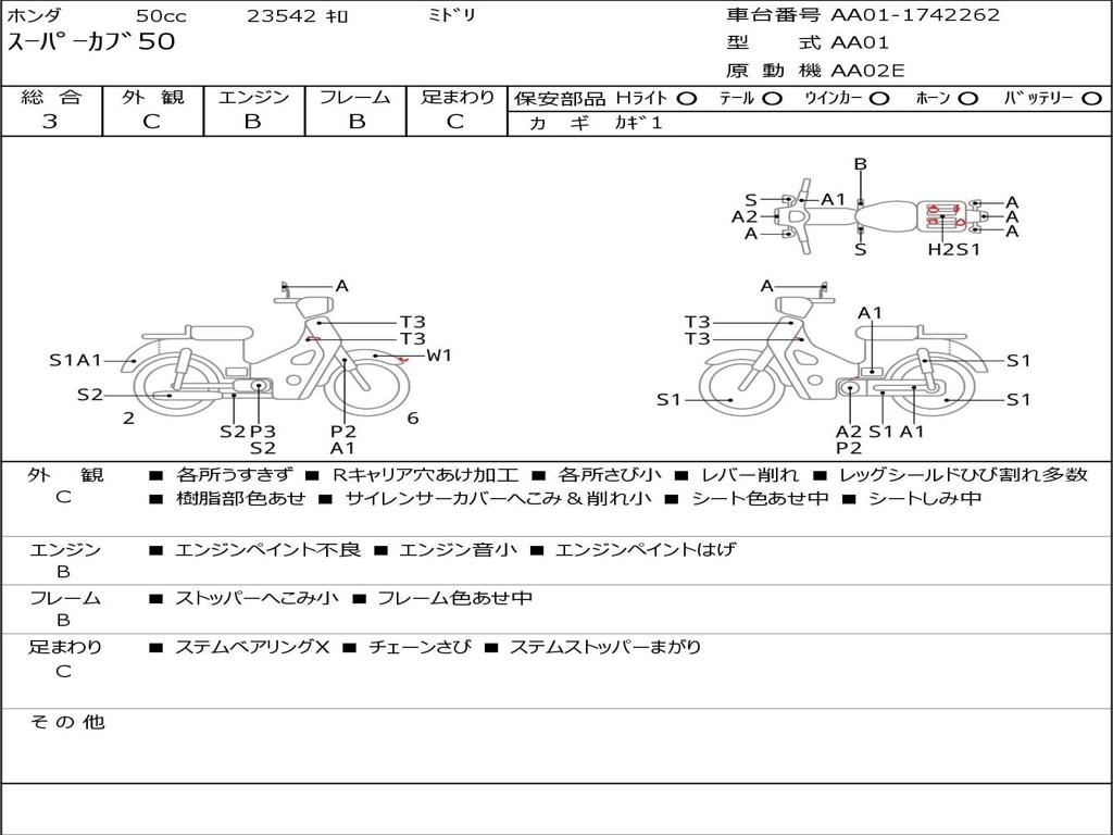 | Номер рамы / VIN | AA01-1742262 |