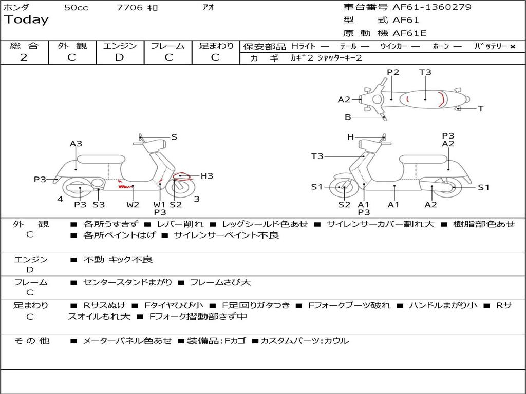 | Номер рамы / VIN | AF61-1360279 |