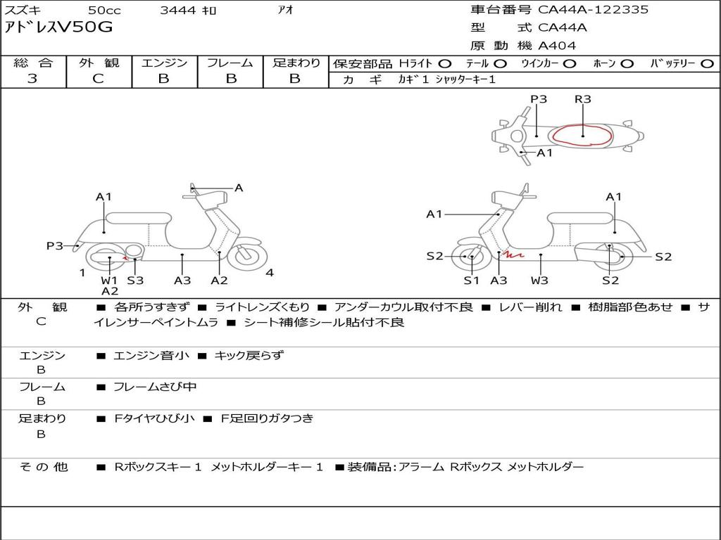 | Номер рамы / VIN | CA44A-122335 |