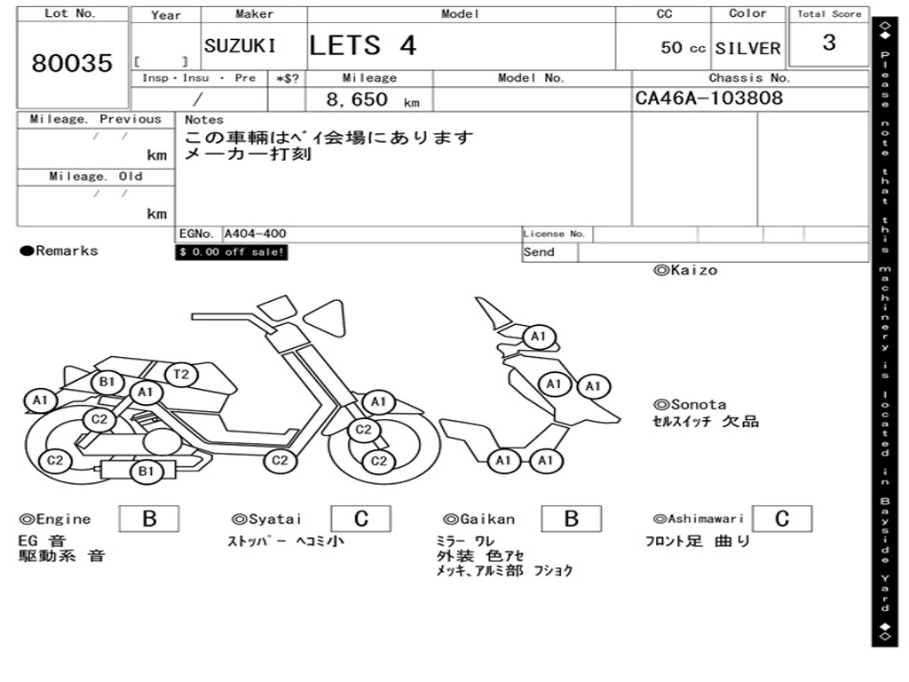 | Аукцион | ARAI BAYSIDE |
