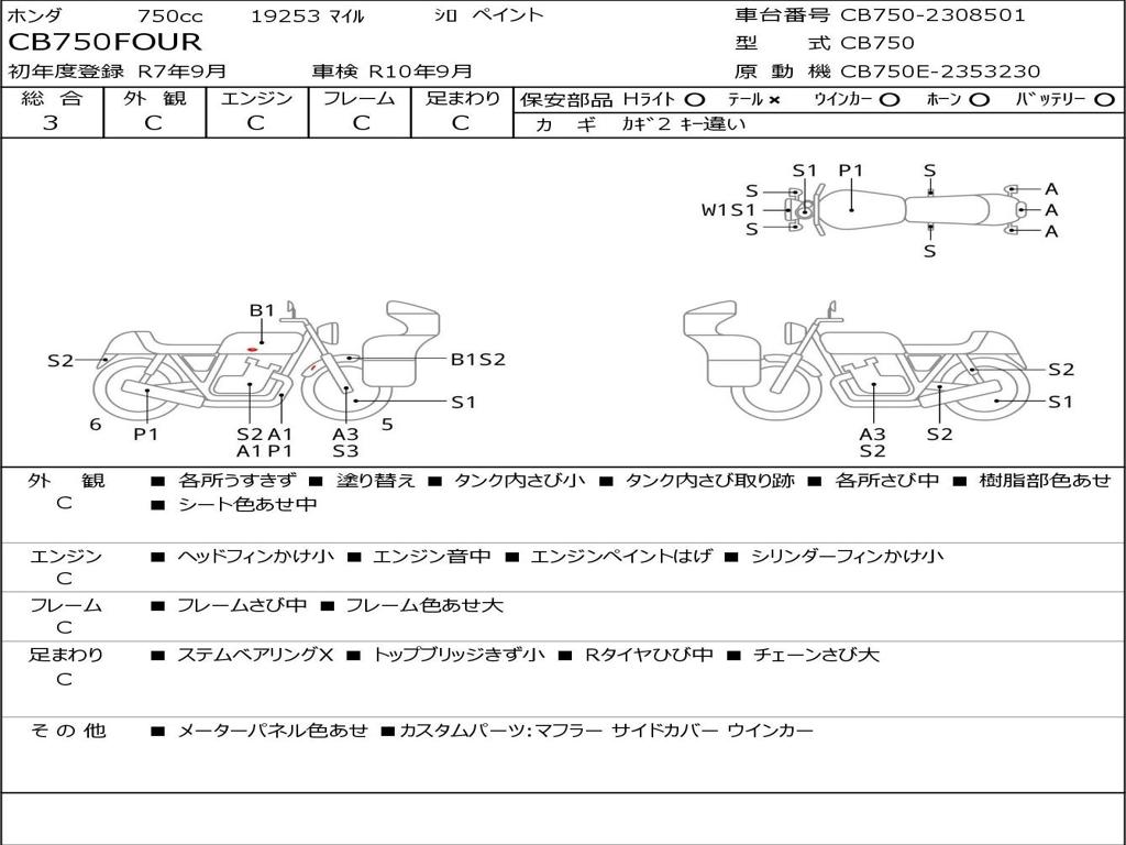 | Номер рамы / VIN | CB750-2308501 |